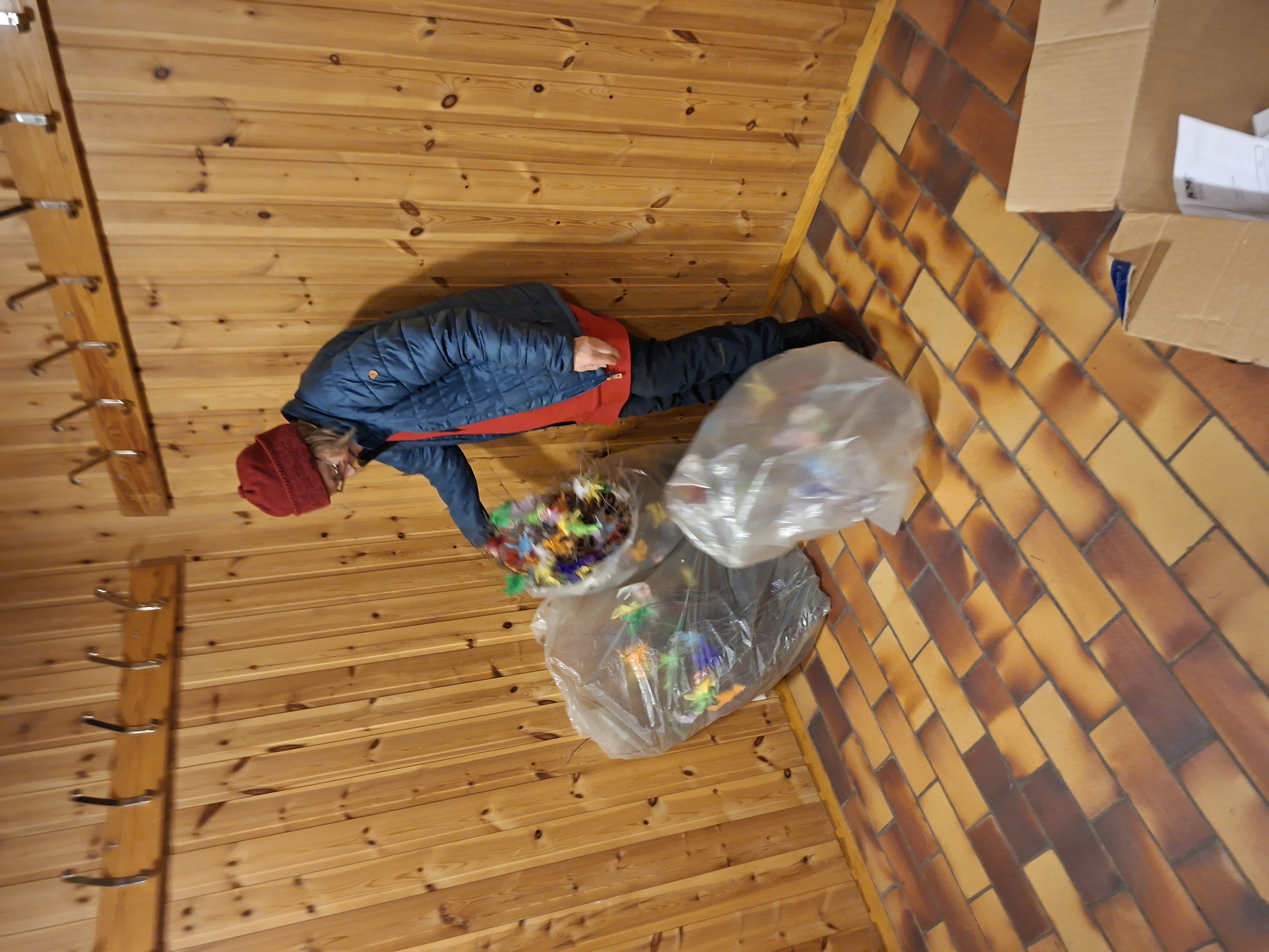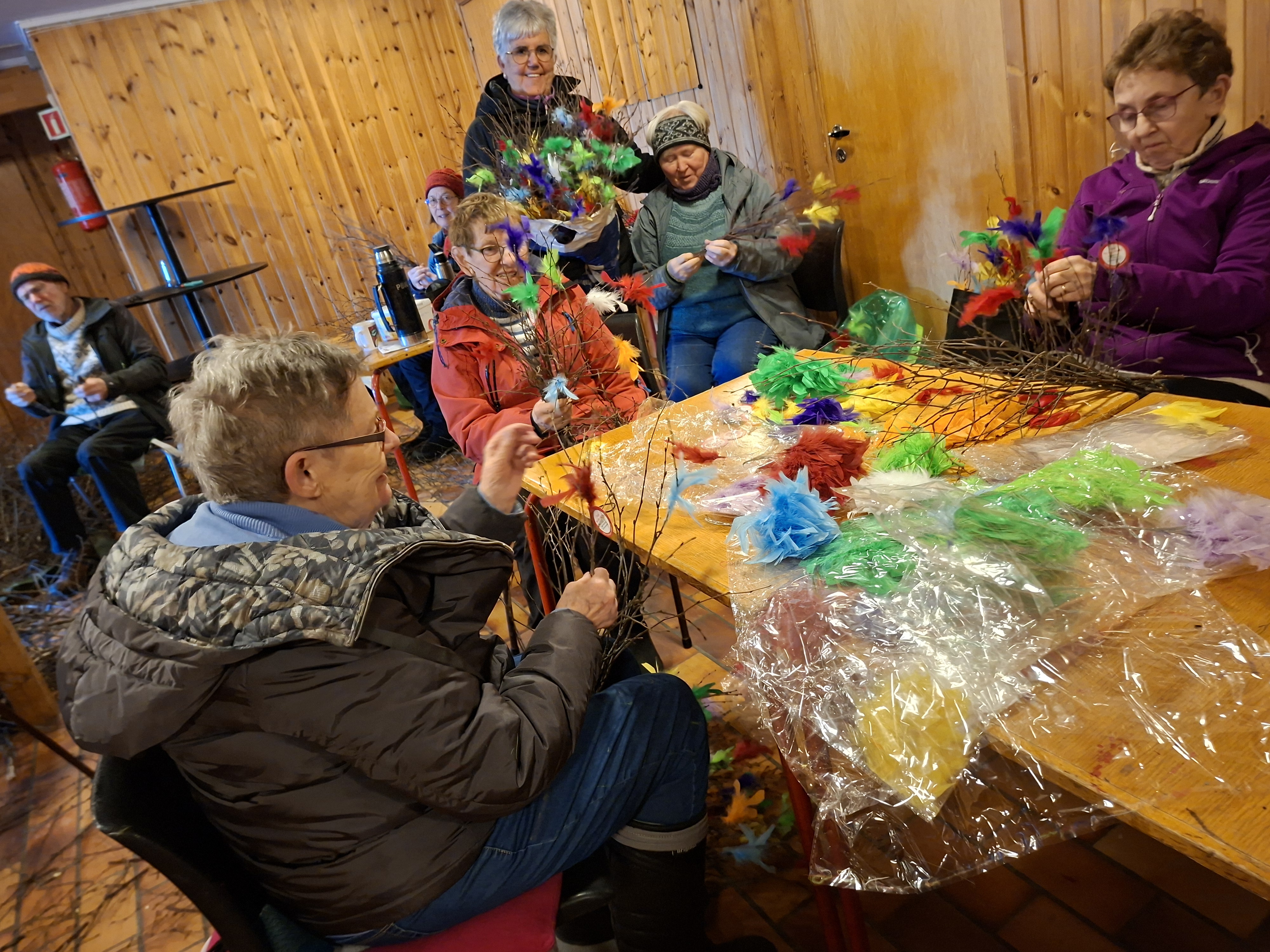 Kari H Alstad har sendt oss noen bilder da medlemmer i Kvam og Følling sanitetslag var samlet i kjelleren på Følling grendehus med å lage buketter til fastelaven den 15.februar