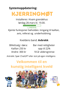 Tradisjonen tro blir det påskmøt i grendehuset palmelørdag, og i år er det kjerringan som arrangerer. Vi ønsker alle velkommen til en trivelig kveld borti huset!